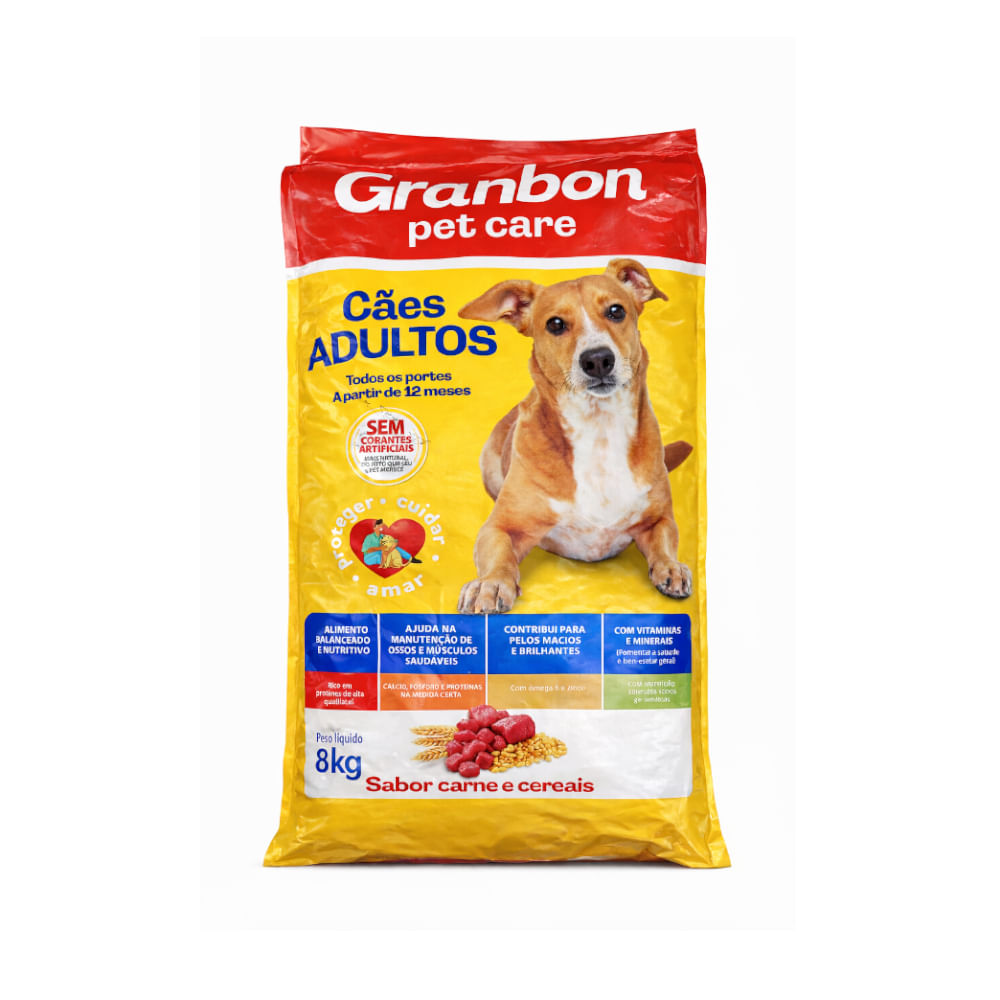 Com sabor de carne combinado a cereais selecionados, a ração Granbon Pet Care proporciona alta palatabilidade, ou seja, é muito saborosa e atrativa até mesmo para os cães mais exigentes. Sua formulação é pensada para fornecer os nutrientes essenciais que contribuem para ossos e dentes fortes, boa digestão e pelagem mais bonita.